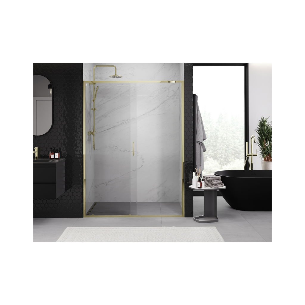 Mexen Exo, posuvné sprchové dveře 155 cm, čiré sklo, zlatá, 8151-155-000-50-00