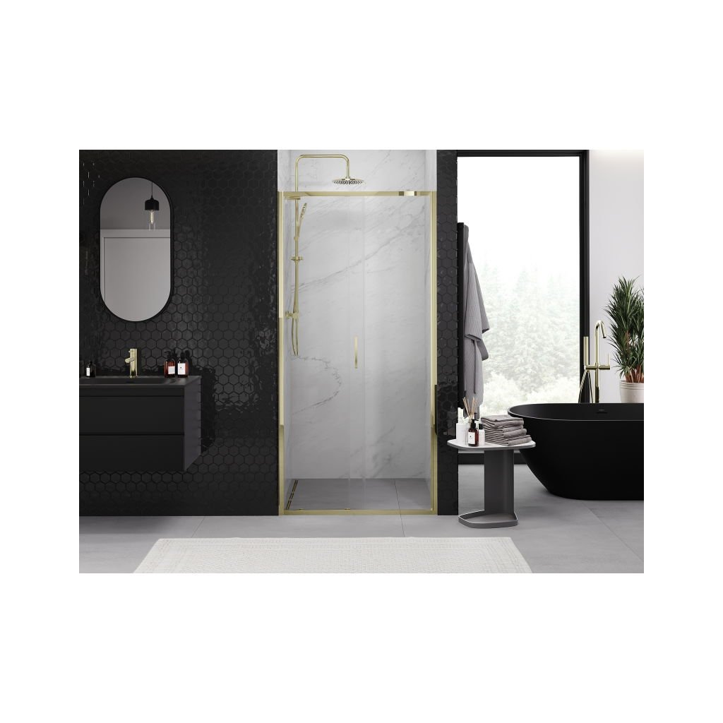 Mexen Exo, posuvné sprchové dveře 90 cm, čiré sklo, zlatá, 8151-090-000-50-00