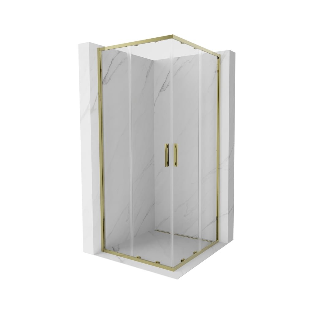 Mexen Exo, posuvný čtvercový sprchový kout 80 x 80 cm, čiré sklo, zlatá, 8111-080-080-50-00
