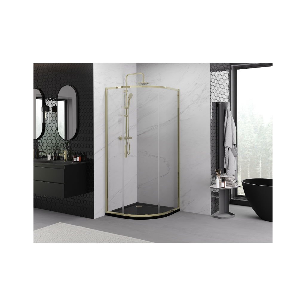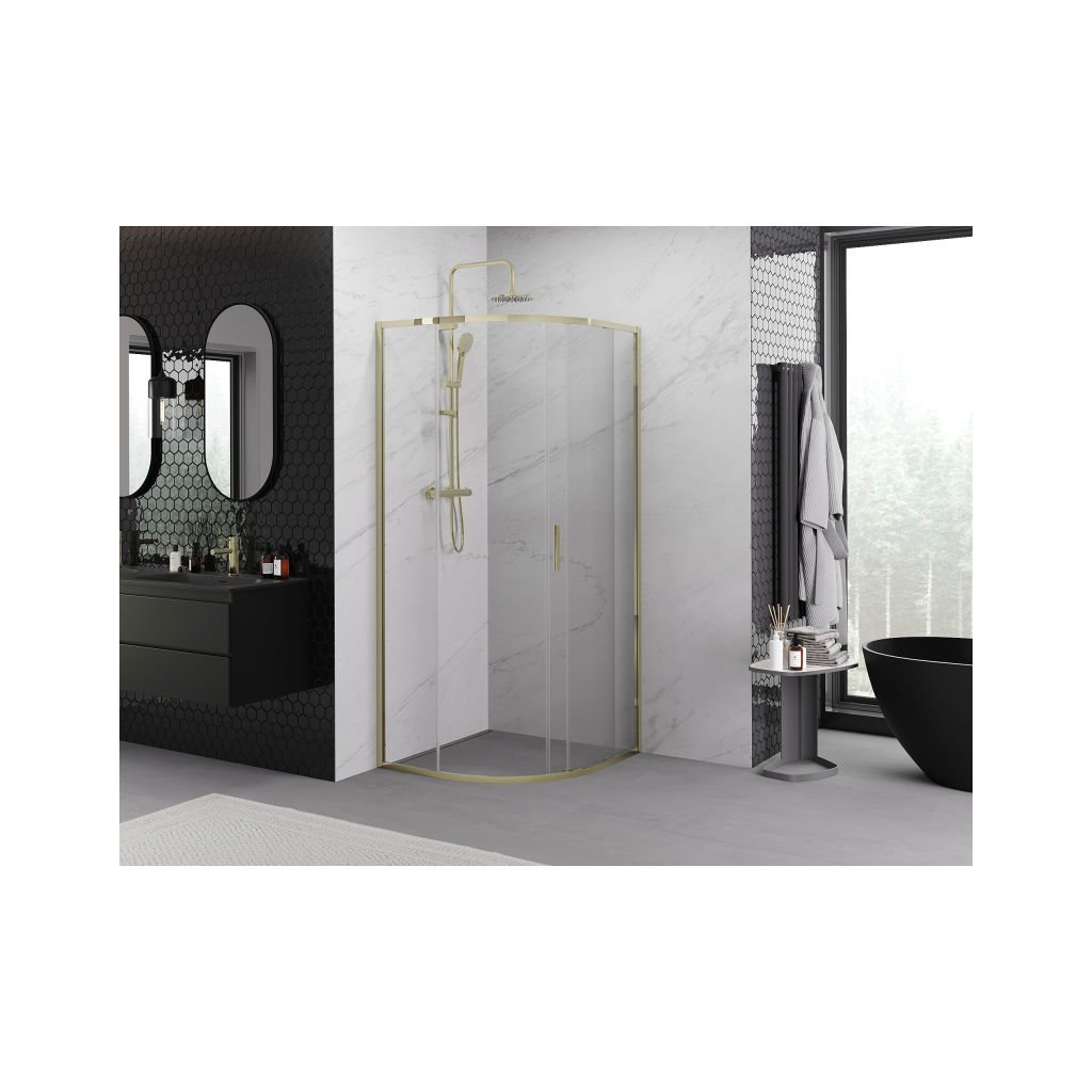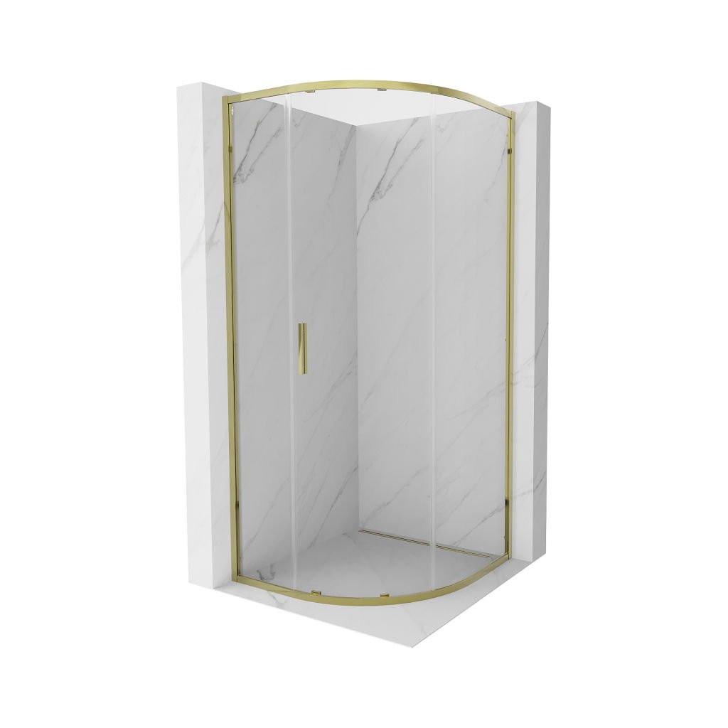 Mexen Exo, posuvný půlkruhový sprchový kout 100 x 100 cm, čiré sklo, zlatá, 8131-100-100-50-00