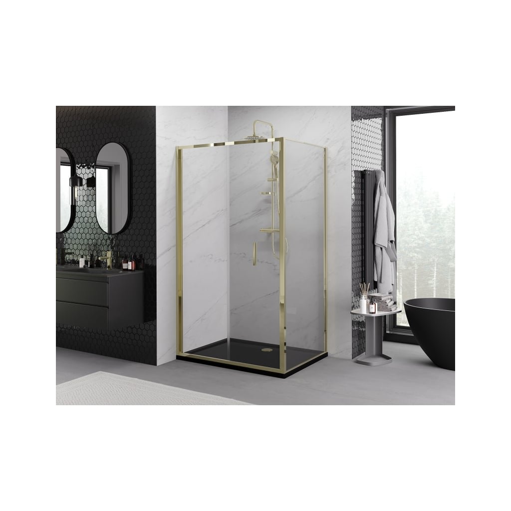 Mexen Exo, skládací sprchový kout 80 x 75 cm, čiré sklo, zlatá, 816-080-075-50-00