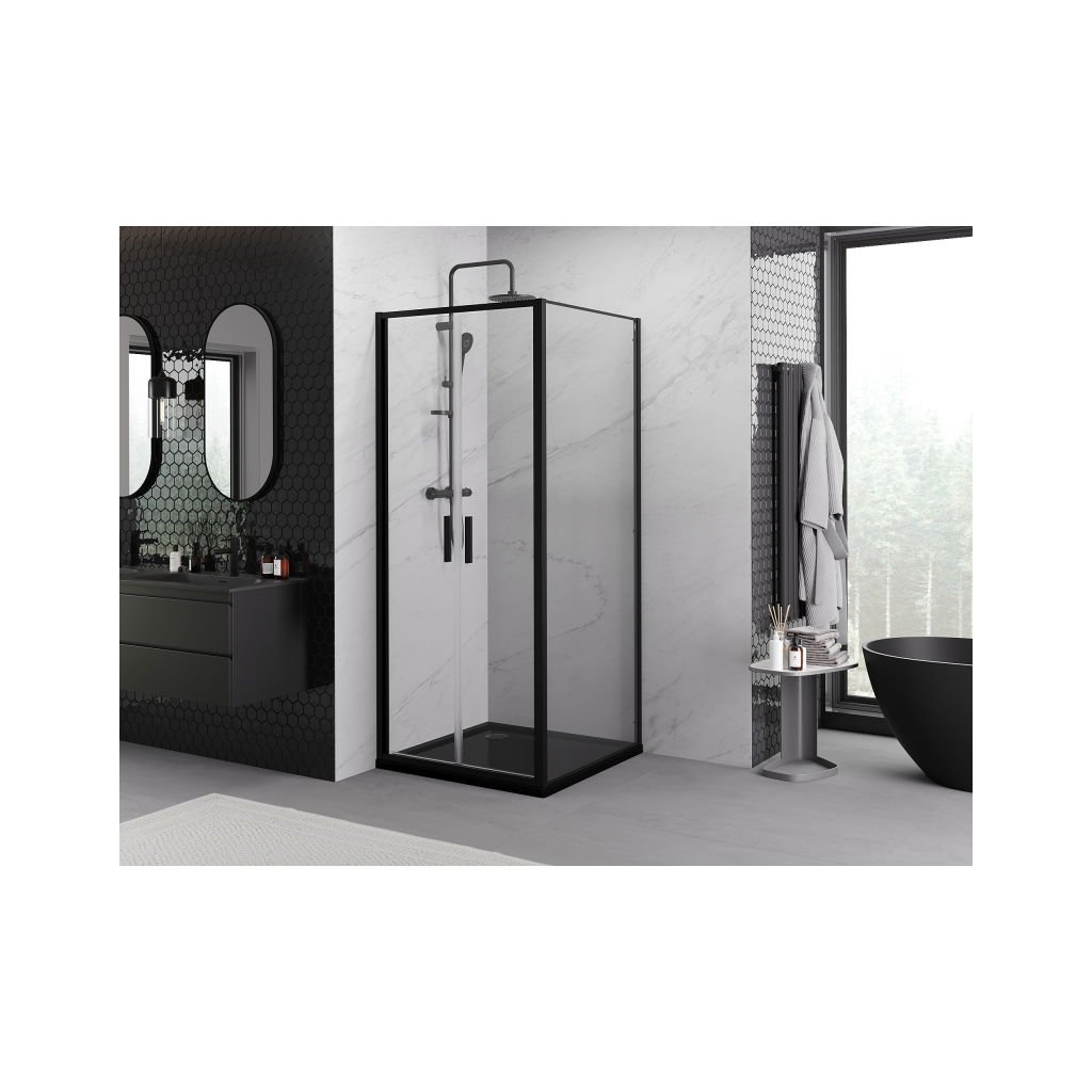 Mexen Exo, sprchový kout s křídlovými dveřmi 100 x 100 cm, 6mm čiré sklo, černý profil, 814-100-100-70-00