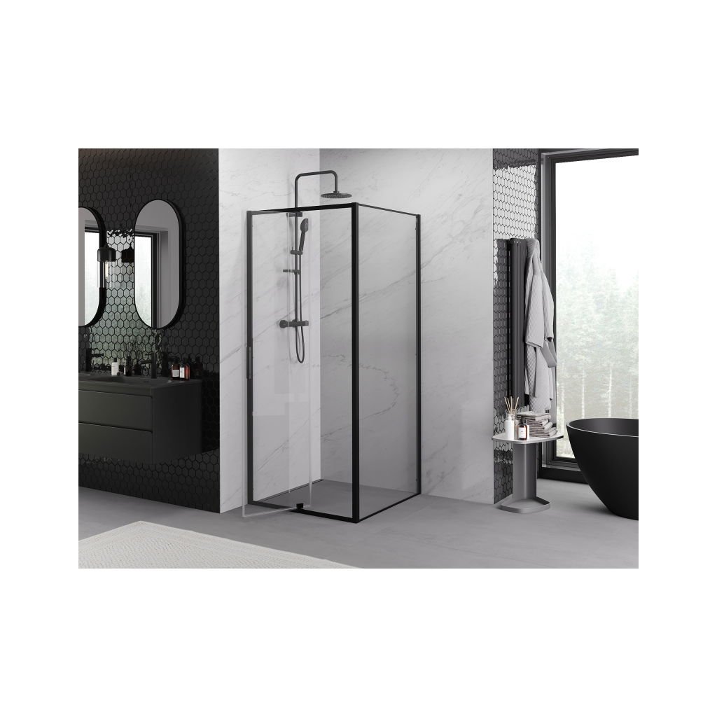 Mexen Exo, sprchový kout s křídlovými dveřmi 100 x 100 cm, 6mm čiré sklo, černý profil, 819-100-100-70-00
