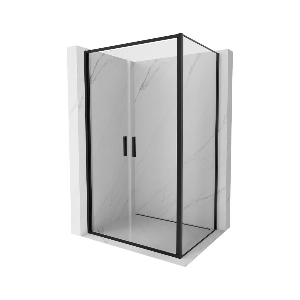 Mexen Exo, sprchový kout s křídlovými dveřmi 70 x 75 cm, 6mm čiré sklo, černý profil, 814-070-075-70-00