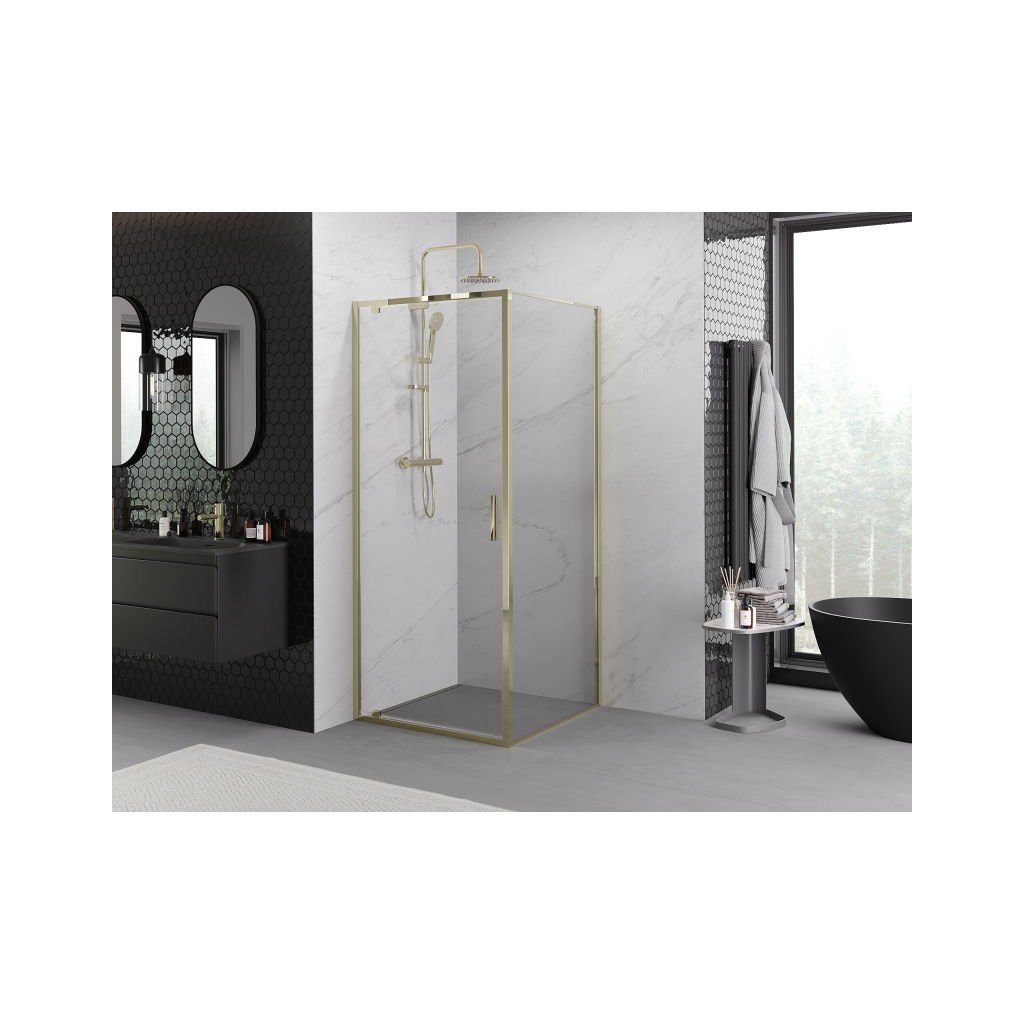 Mexen Exo, výklopný sprchový kout 100 x 100 cm, čiré sklo, zlatá, 8181-100-100-50-00