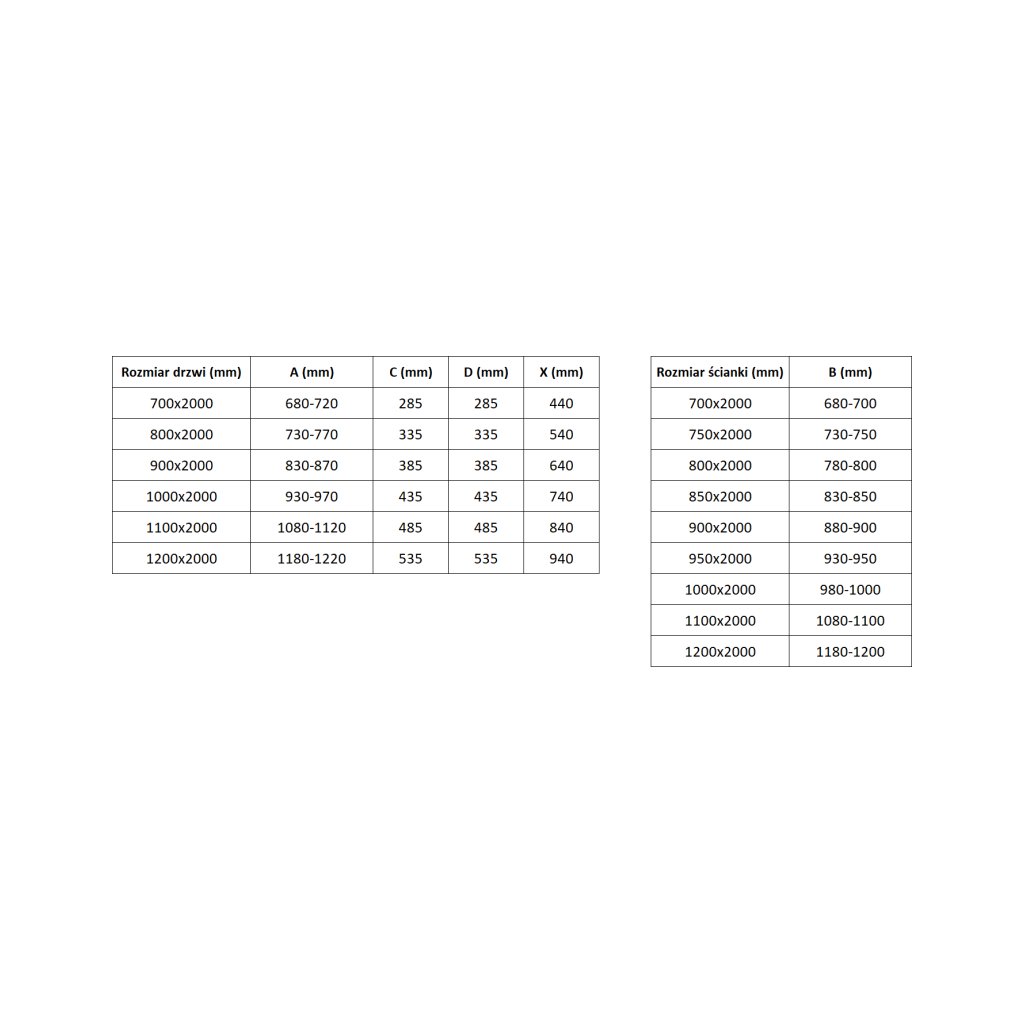 Rozměry: 70x85 cm (dveře 70 cm. stěna 85 cm)