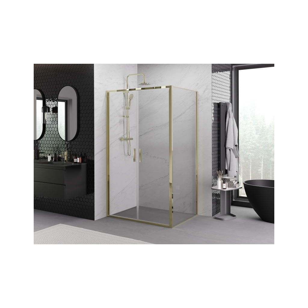 Mexen Exo, výklopný sprchový kout 70 x 90 cm, čiré sklo, zlatá, 814-070-090-50-00