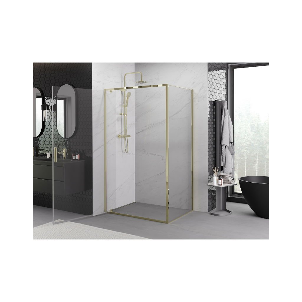 Mexen Exo, výklopný sprchový kout 75 x 90 cm, čiré sklo, zlatá, 8181-075-090-50-00