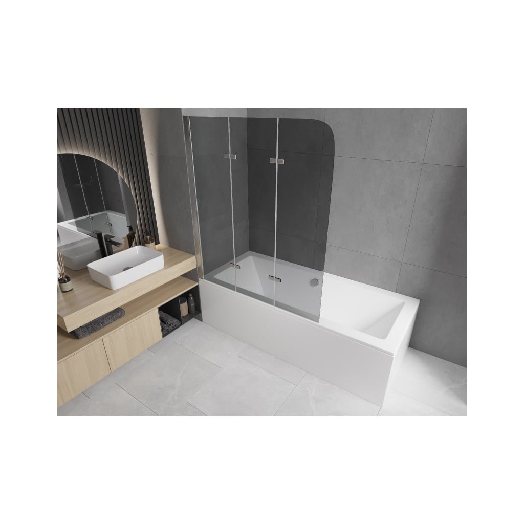 Mexen FELIX, vanová zástěna, 3-křídlová, 120 x 140 cm, šedá, 890-120-003-01-40