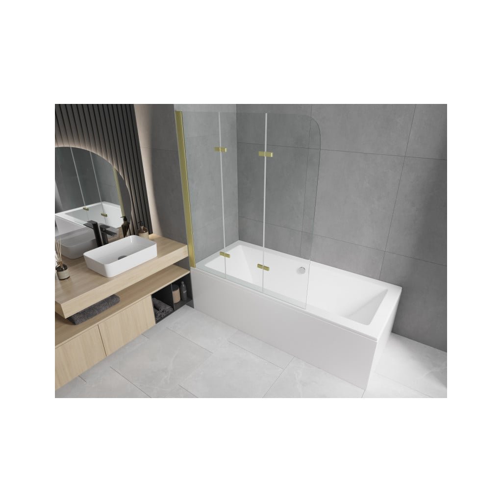 Mexen FELIX, vanová zástěna, 3-křídlová, 120 x 140 cm, zlatá-transparentní, 890-120-003-50-00