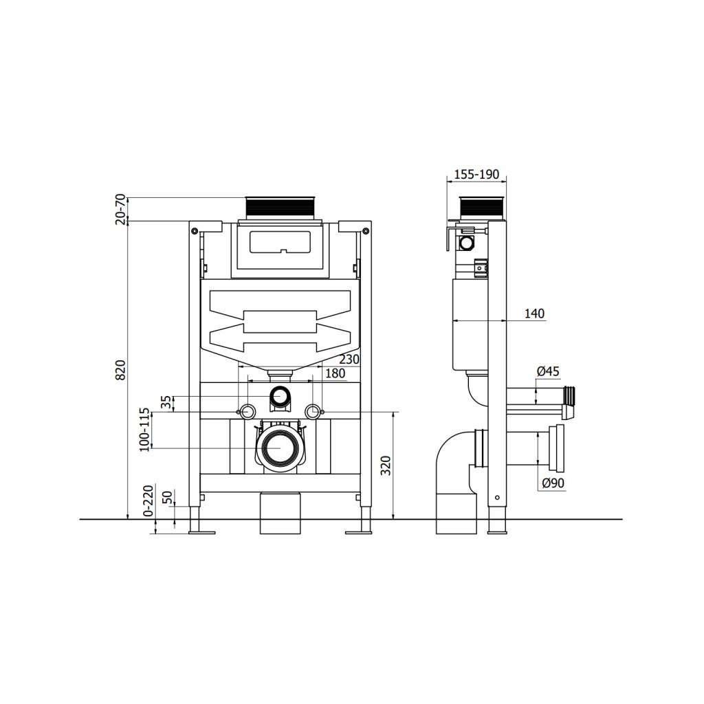 - Pro instalaci do pevné stěny nebo sádrokartonové stěny
