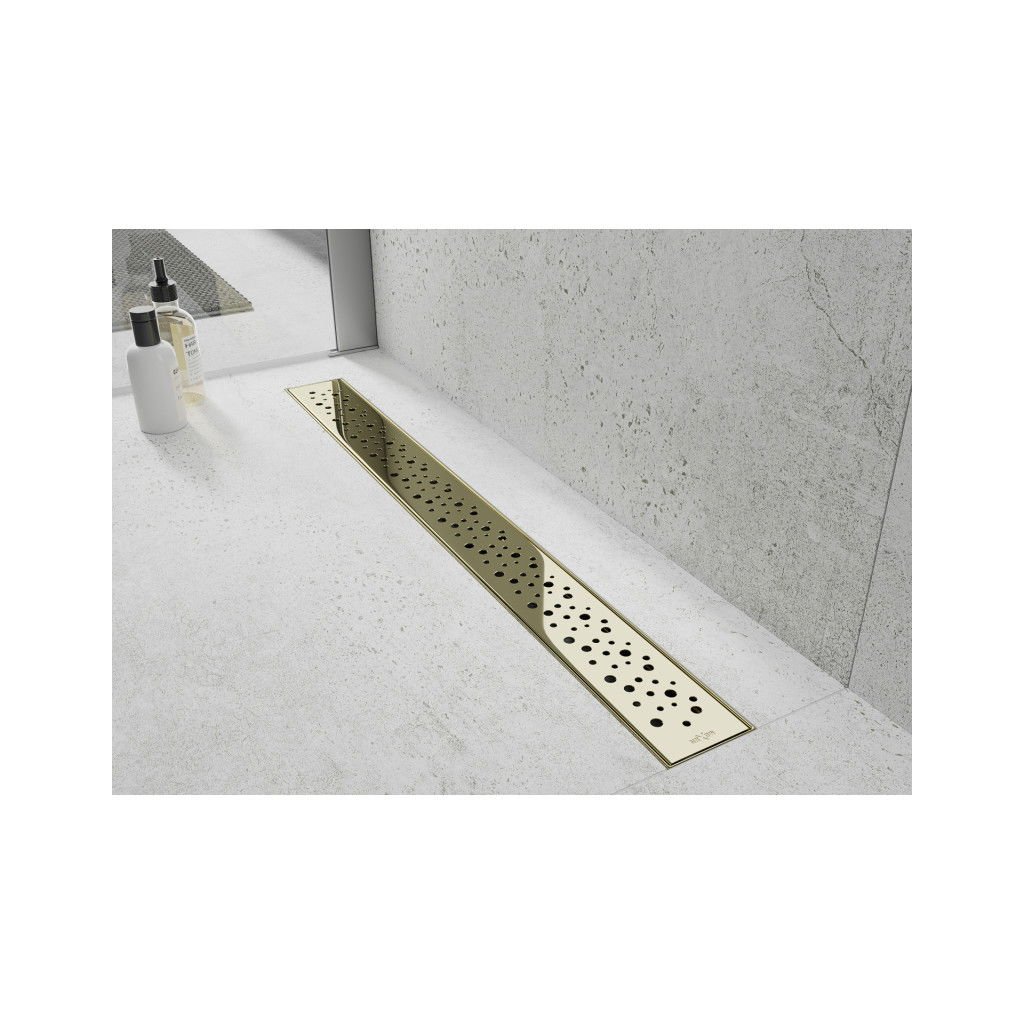 Mexen Flat 360°, nerezový sprchový žlab vzor M12 50 cm, zlatá lesklá, 1521050-40