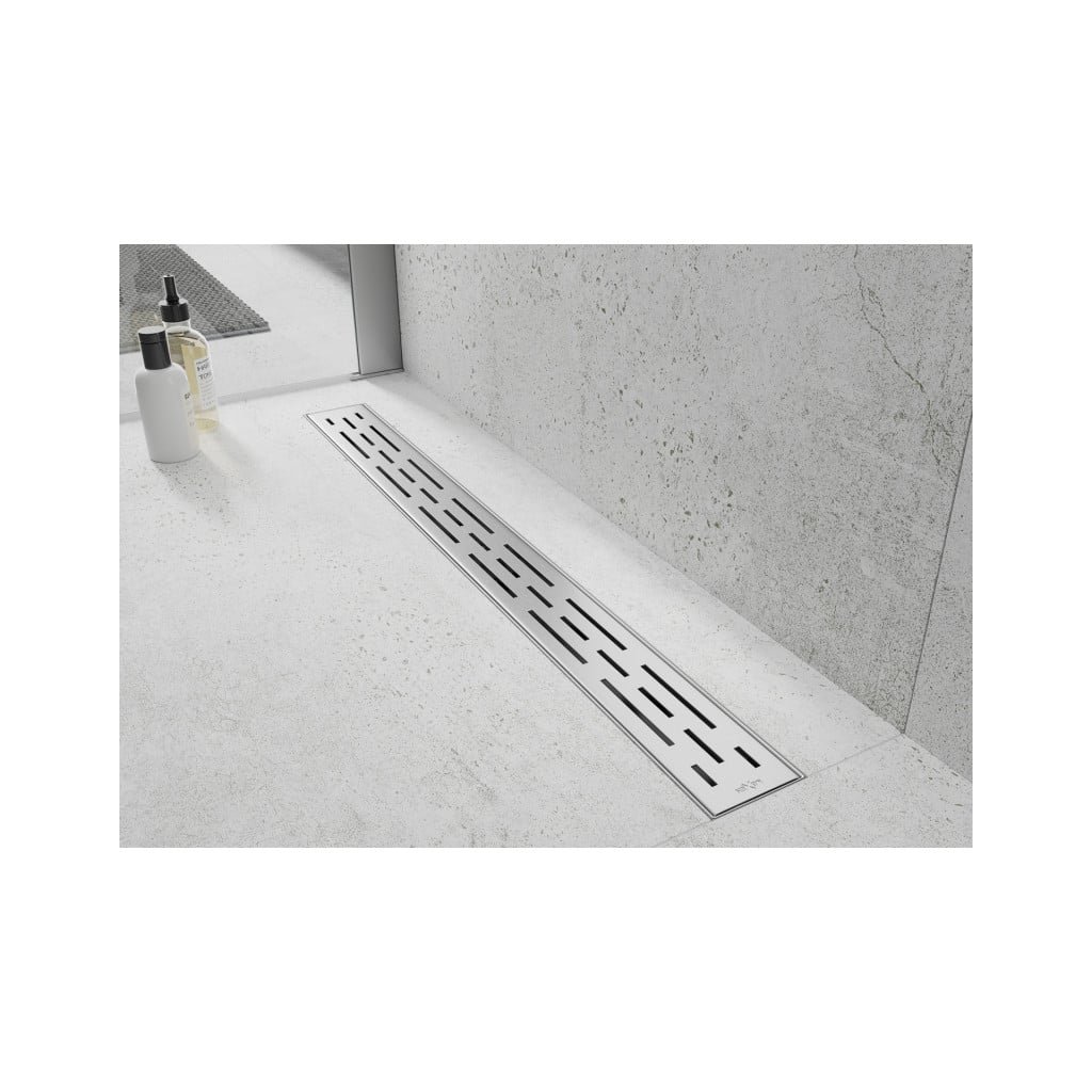 Sprchový žlab je celý vyroben z kvalitní nerezavějící oceli (nerezu) AISI 304 o tloušťce 1,2mm (mřížka tloušťky 1,5mm). Žlab obsahuje nízký bezúdržbový nerezový sifon s možností čištění z vrchu. Průtok žlabu až do 50-60l/min. Na vrchní mřížce žlabu se nachází krycí fólie, která slouží k ochraně mřížky žlabu po montáži je třeba ji odlepit.