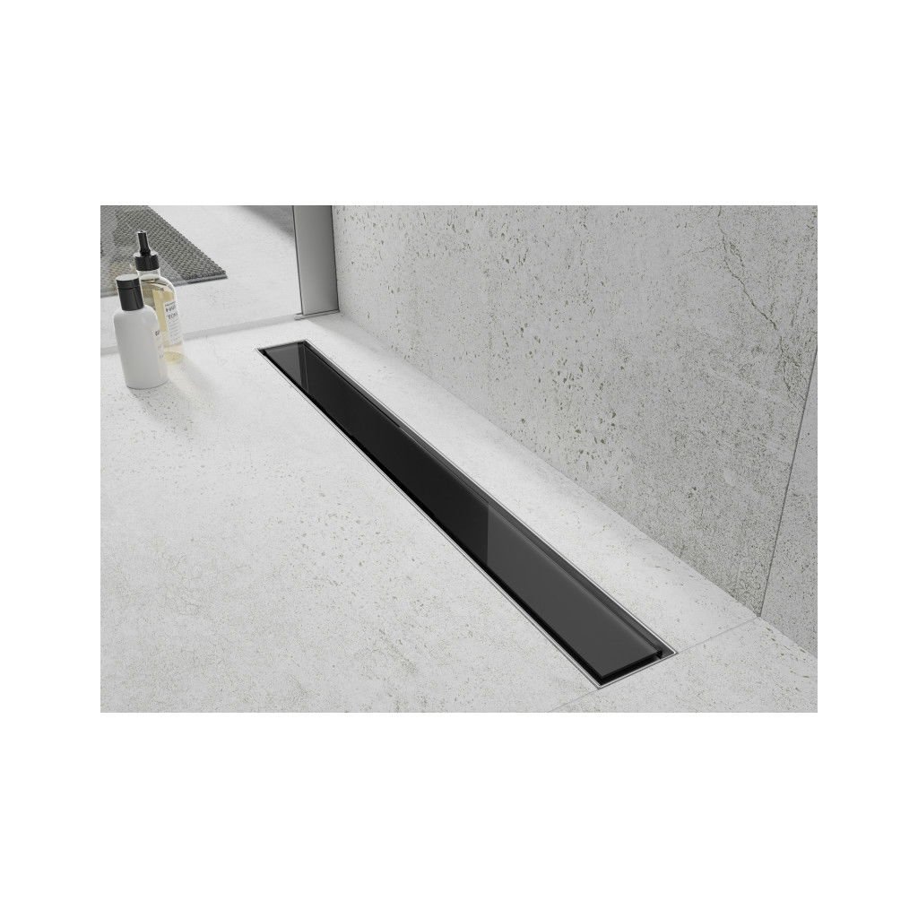 Sprchový nerezový podlahový žlab 90 cm, vzor černé sklo