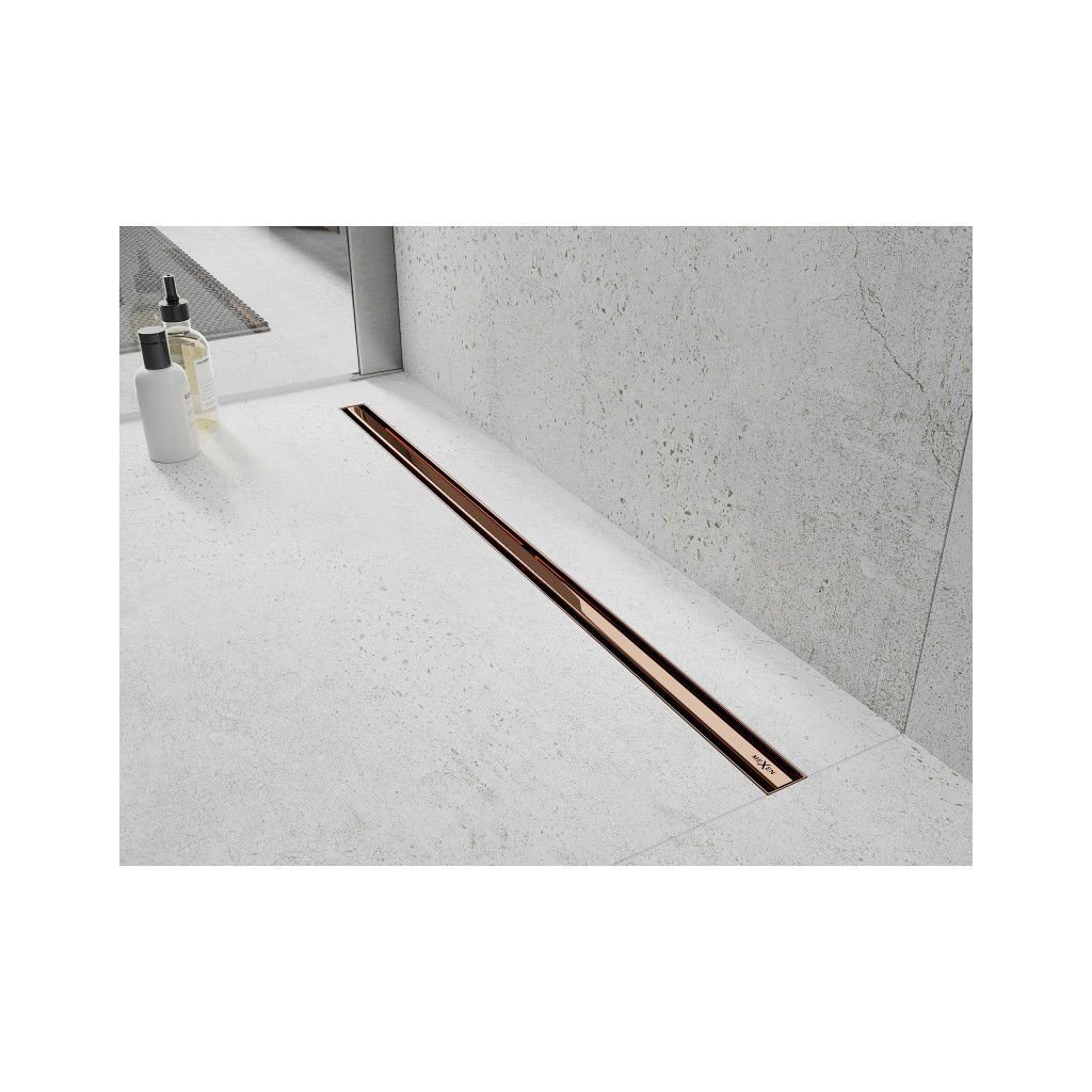 MEXEN Flat nerezový sprchový žlab s rotačním 360° sifonem 90 cm, vzor SLIM, růžovo-zlatá, 1641090
