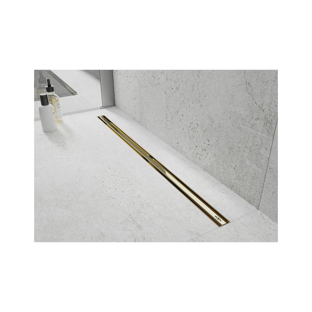 MEXEN Flat nerezový sprchový žlab s rotačním 360° sifonem 150 cm, vzor SLIM, zlatá, 1541150
