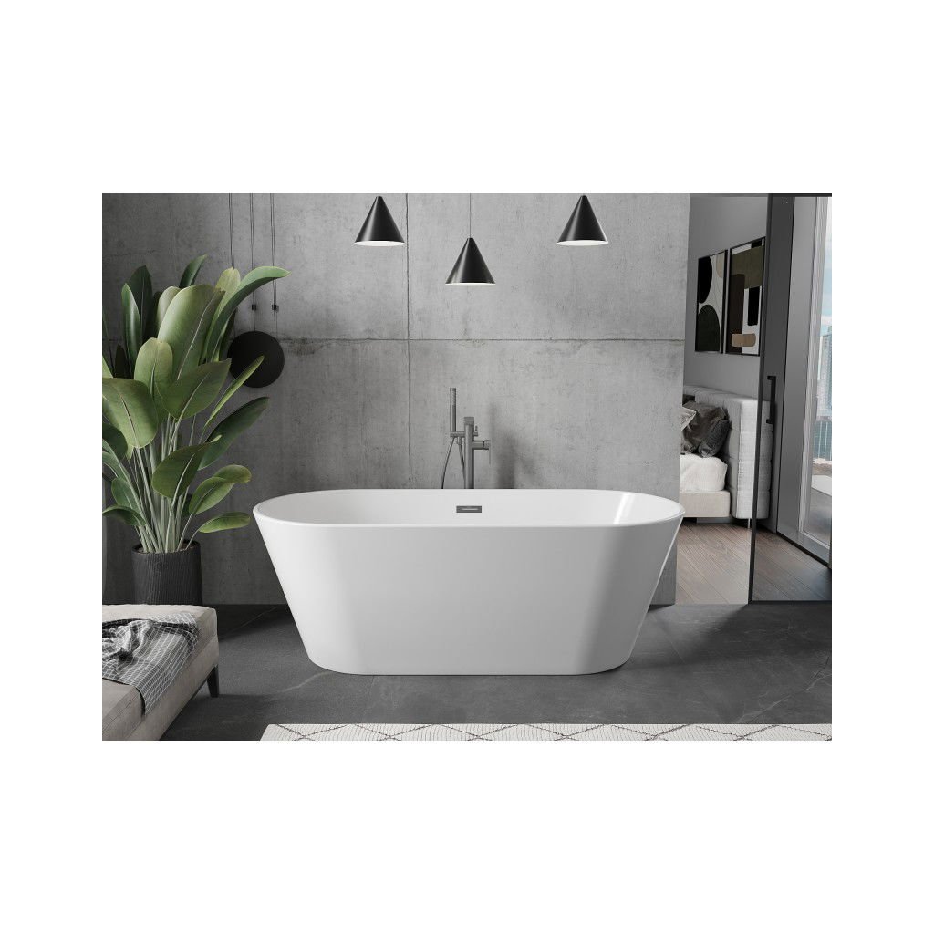 Mexen Flavia, volně stojící vana 150 x 75 cm, bílá, broušený grafit přepad, 54031507500-95