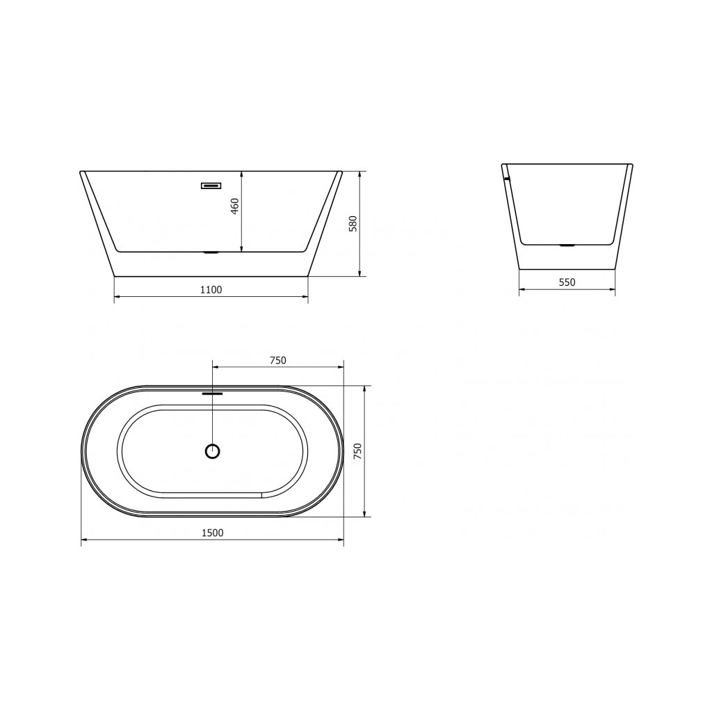 Mexen Flavia, volně stojící vana 150 x 75 cm, bílá, měděný přepad, 54031507500-65