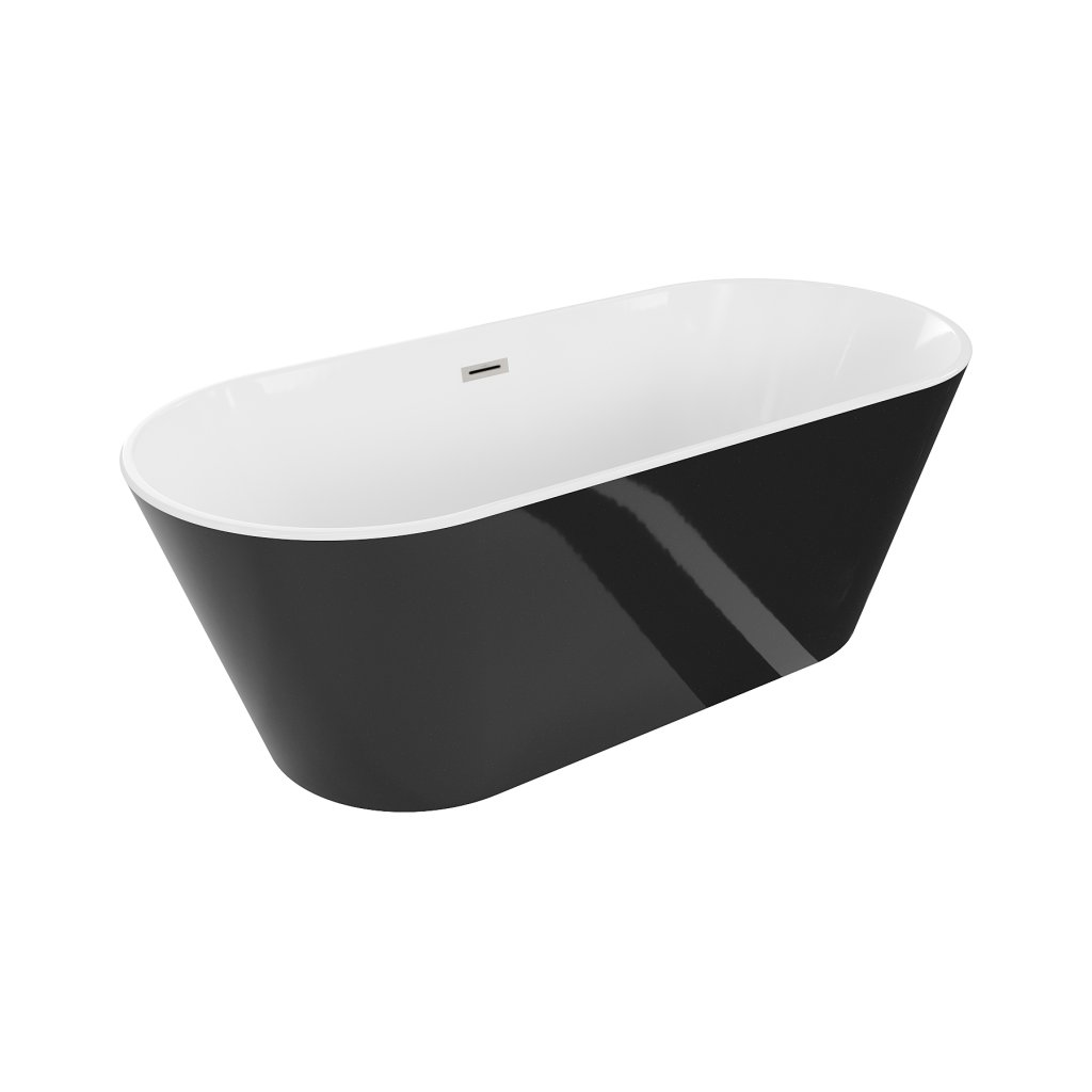 Mexen Flavia, volně stojící vana 150 x 75 cm, bílá-černá, broušená ocel přepad, 54031507575-97
