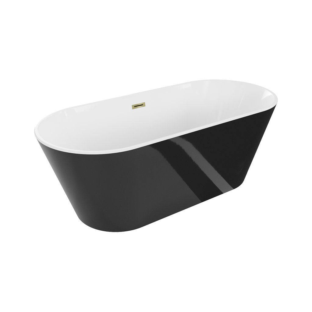 Mexen Flavia, volně stojící vana 170 x 75 cm, bílá-černá, zlatý lesklý přepad, 54031708075-50