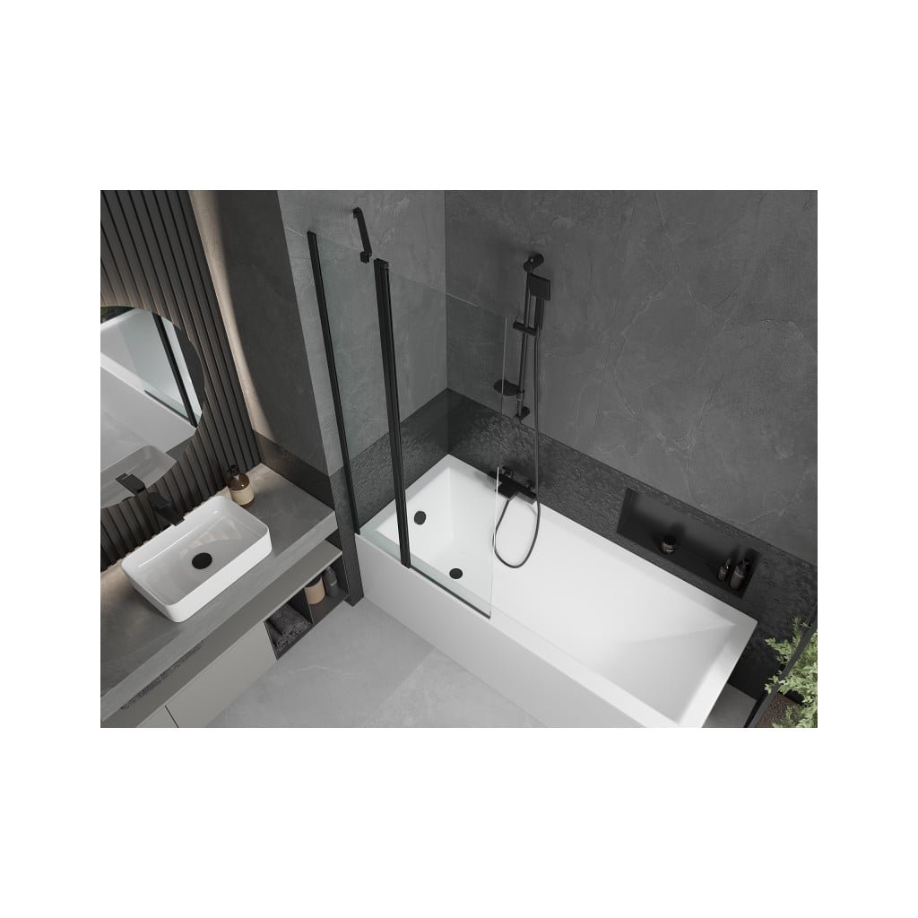Mexen Flip, 1-křídlová vanová zástěna 80 x 150 cm, 6 mm čiré sklo, černý profil, 894-080-101-70-00
