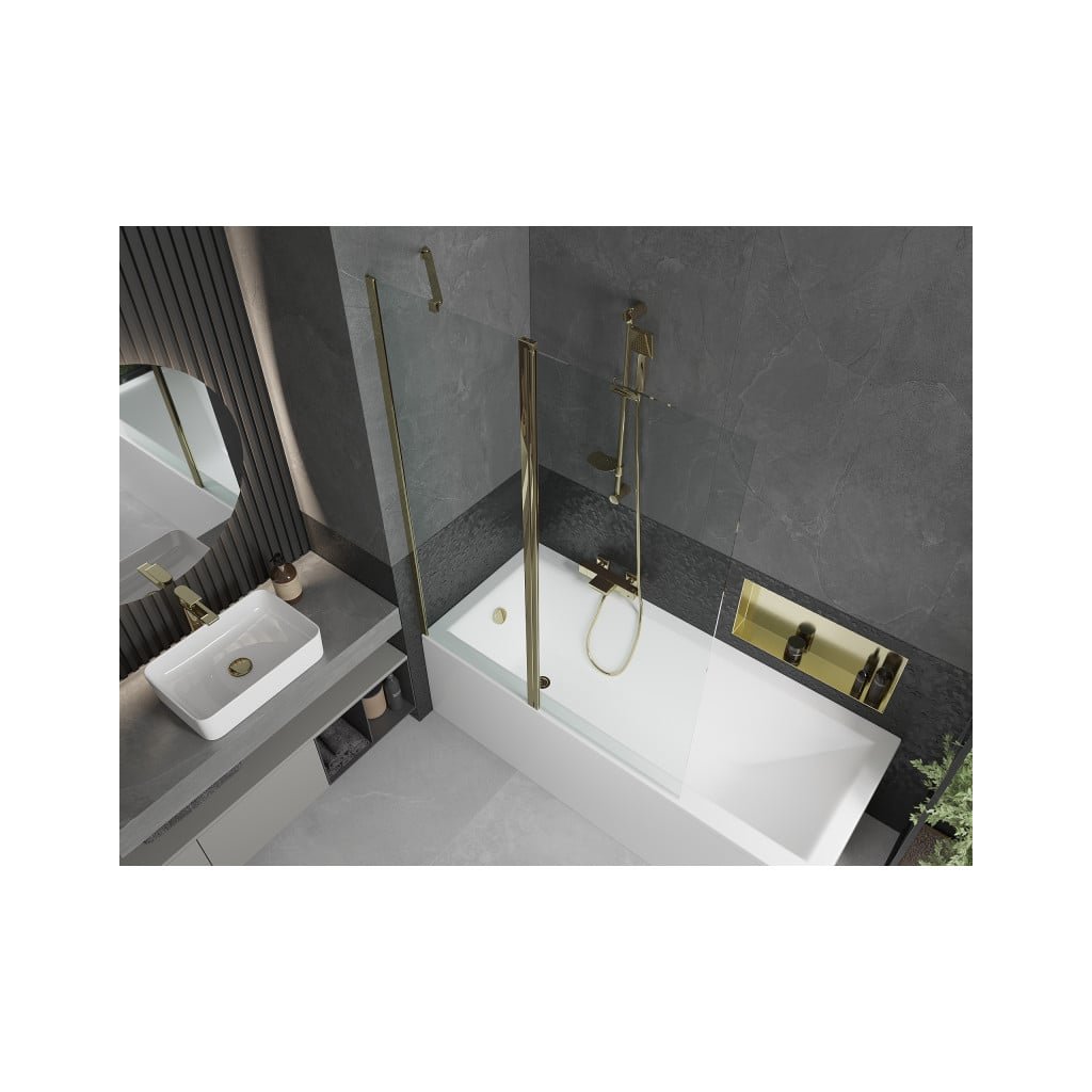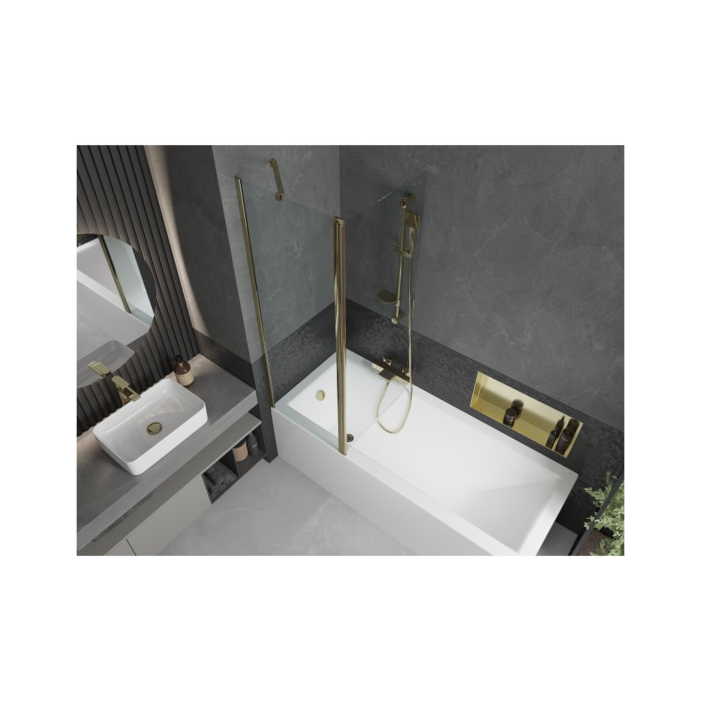 Mexen Flip, vanová zástěna 1-křídlová 120 x 150 cm, otočné křídlo, 6 mm čiré sklo, zlatý profil, 894-120-101-50-00