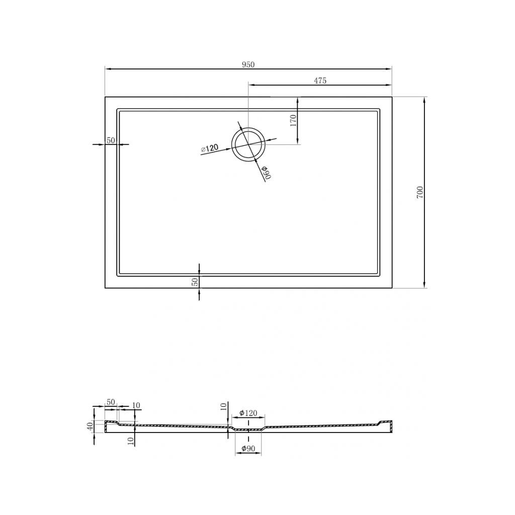 Mexen Flow, obdélníková sprchová vanička slim 95 x 70 cm, černá matná, 46R707095