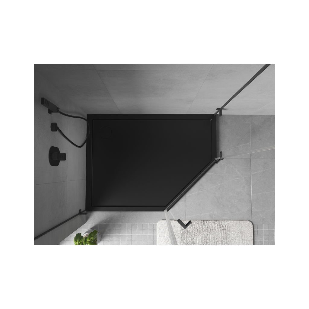 Mexen Flow, pětiúhelníková sprchová vanička slim 100 x 90 cm, levá, černá matná - 46P709010L