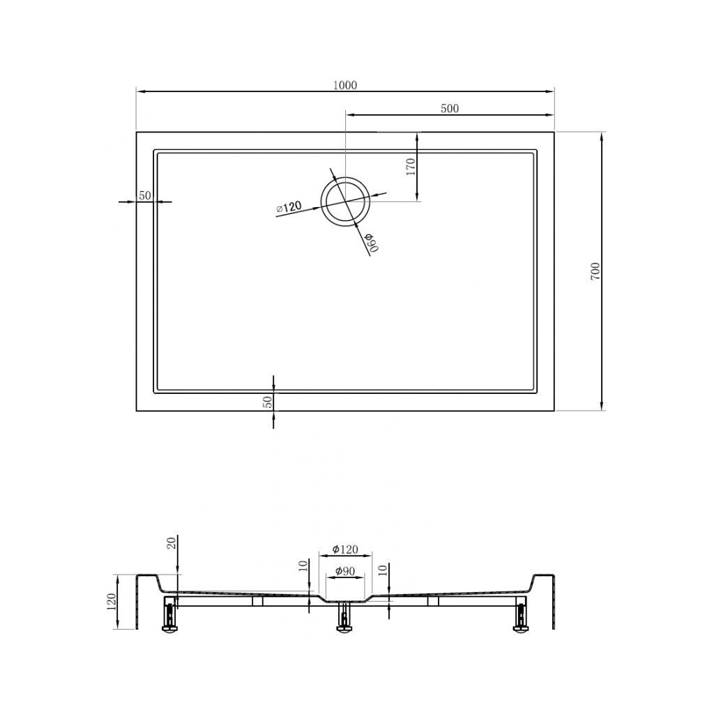 Mexen Flow+, obdélníková sprchová vanička 100 x 70 cm, bílá lesklá, 46R107010H