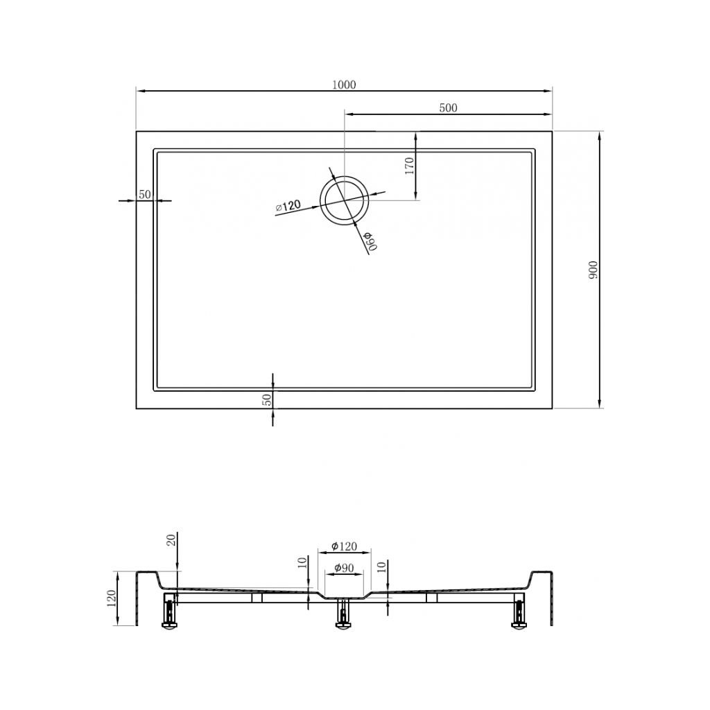 Mexen Flow+, obdélníková sprchová vanička 100 x 90 cm, bílá lesklá, 46R109010H