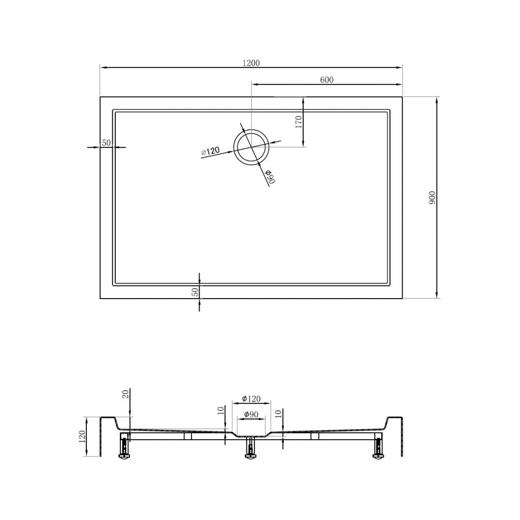 Mexen Flow+, obdélníková sprchová vanička 120 x 90 cm, bílá lesklá, 46R109012H