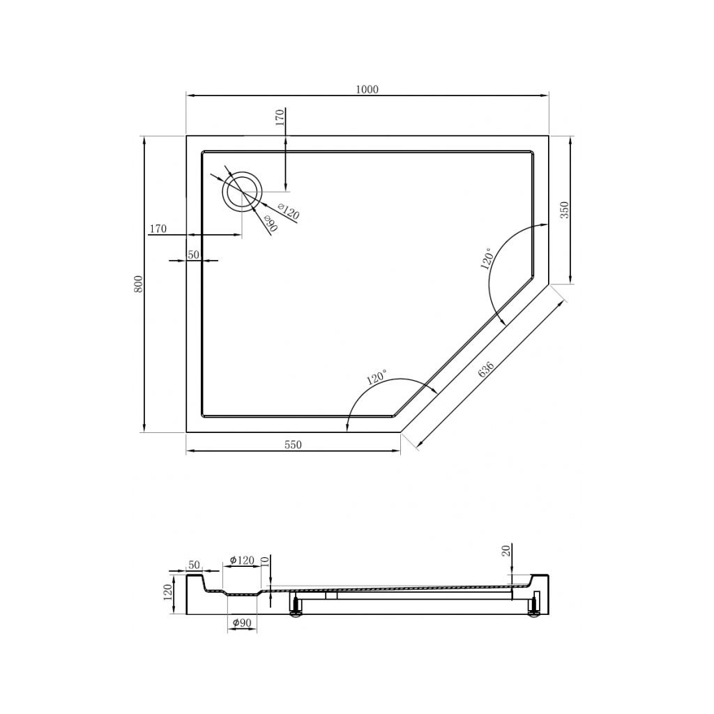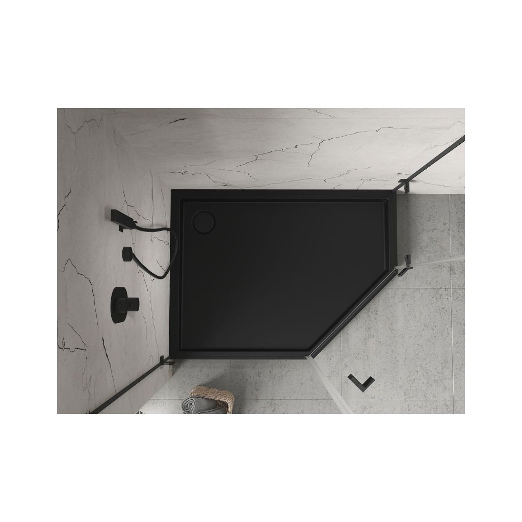 Mexen Flow+, pětiúhelníková sprchová vanička, levá, 80 x 100 cm, černá matná, 46P708010LH