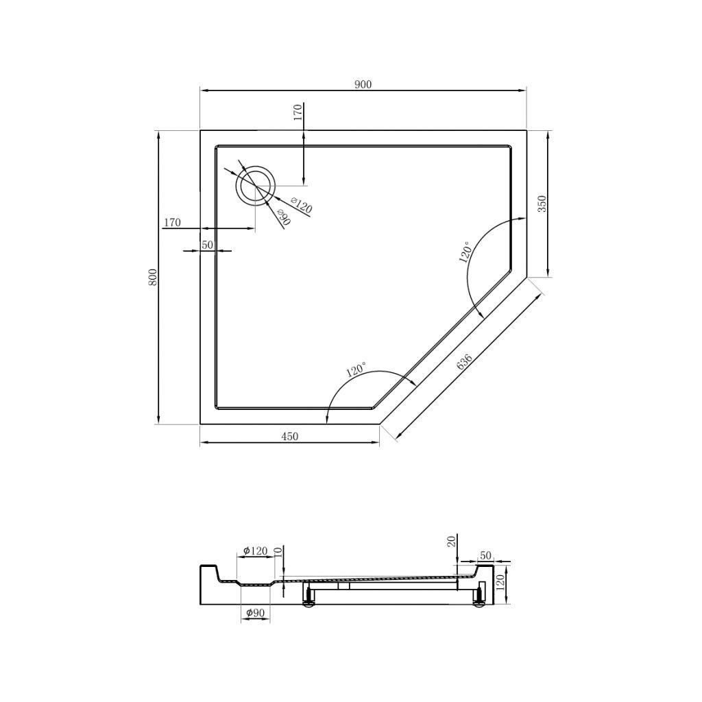 Mexen Flow+, pětiúhelníková sprchová vanička, levá, 90 x 80 cm, bílá lesklá, 46P108090LH