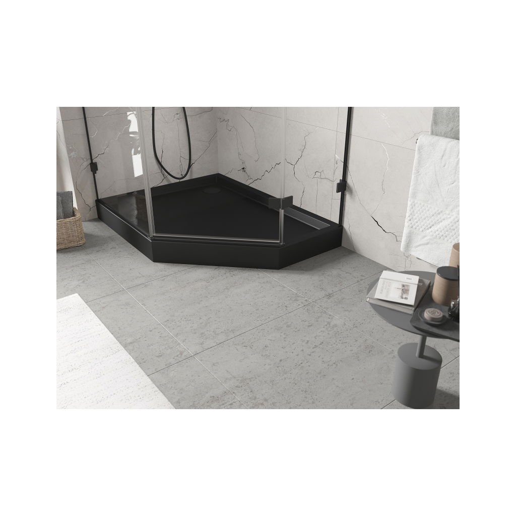 Mexen Flow+, pětiúhelníková sprchová vanička, levá, 90 x 80 cm, černá matná, 46P708090LH