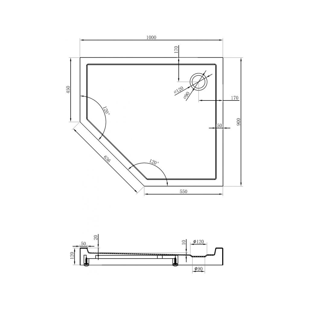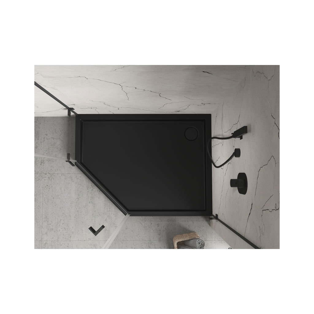 Mexen Flow+, pětiúhelníková sprchová vanička, pravá, 100 x 90 cm, černá matná, 46P709010RH