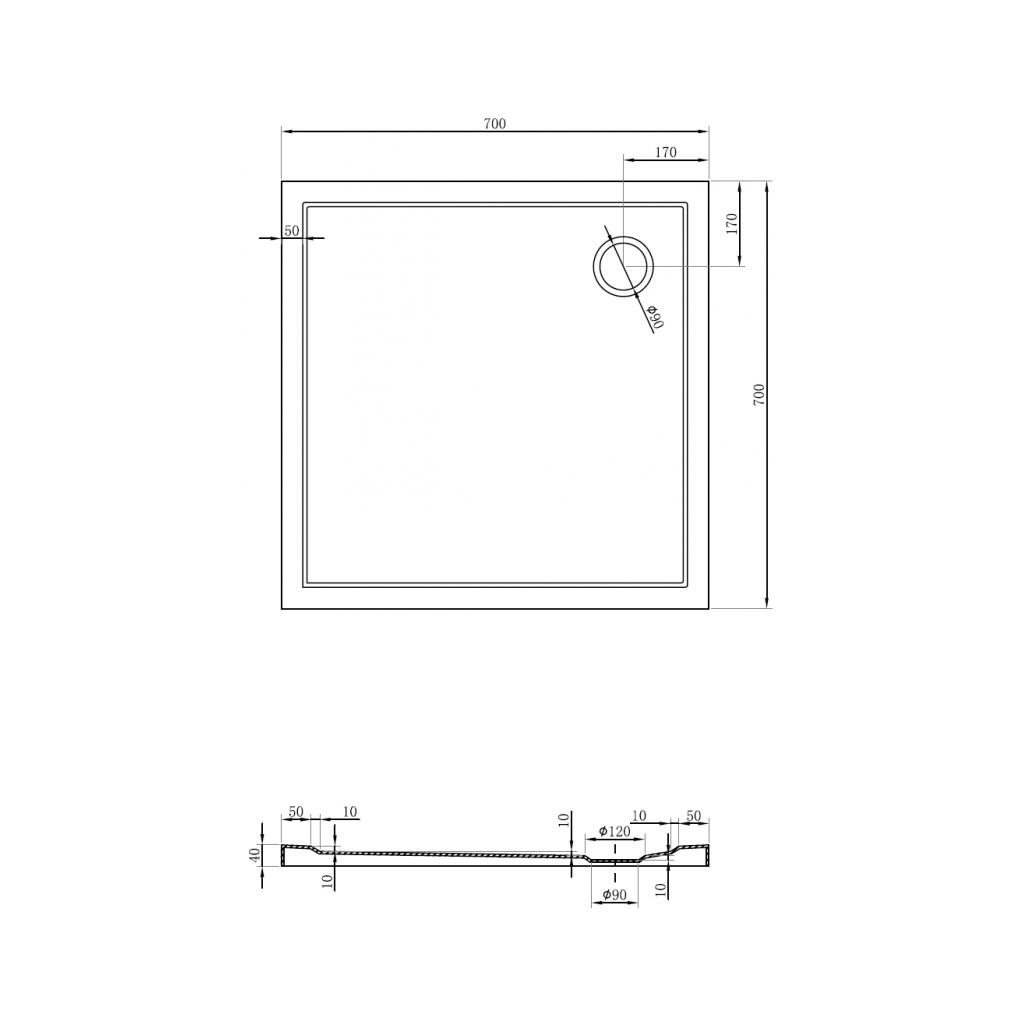 Mexen Flow Slim, čtvercová sprchová vanička 70 x 70 cm, bílá lesklá, 46S107070