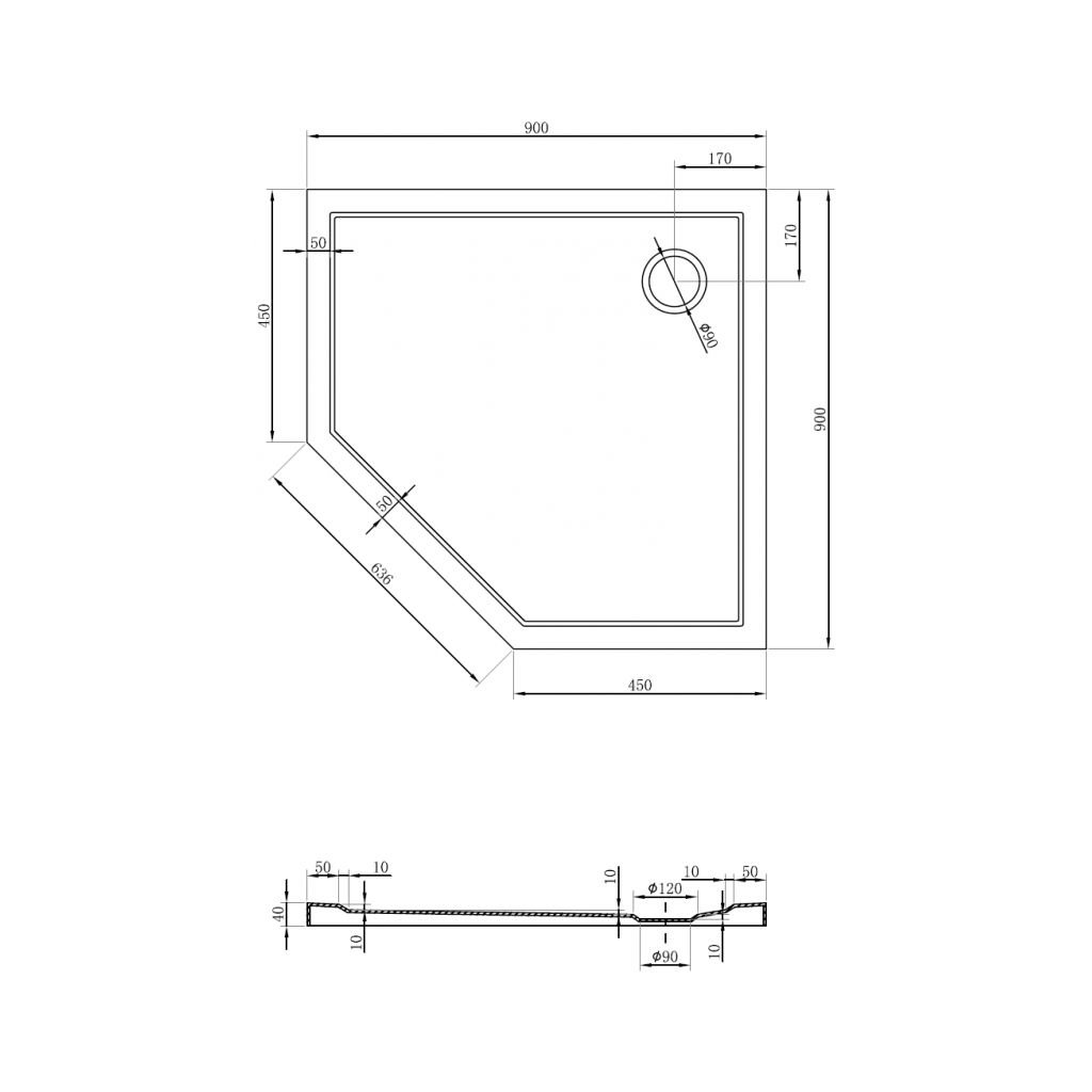 Mexen Flow Slim, pětiúhelníková sprchová vanička 90 x 90 cm, bílá lesklá, 46P109090