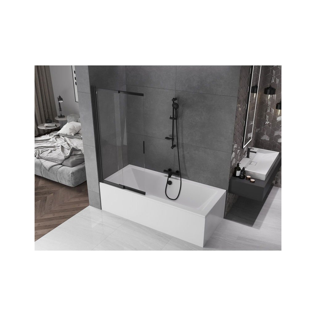 Mexen Fox, 2-křídlová vanová zástěna 85x150 cm, 5mm čiré sklo, černý profil, 891-085-002-70-00