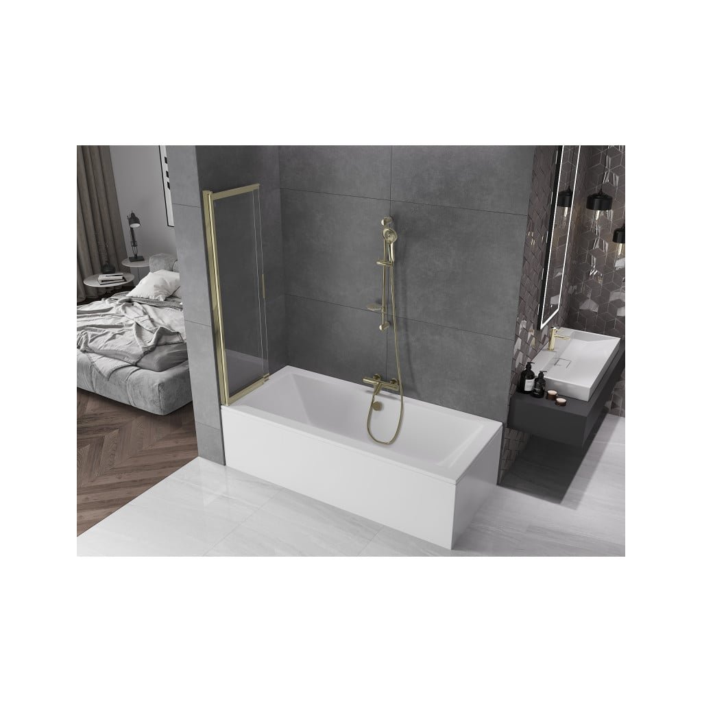 Mexen Fox, 2-křídlová vanová zástěna 85x150 cm, 5mm čiré sklo, zlatý lesklý profil, 891-085-002-50-00