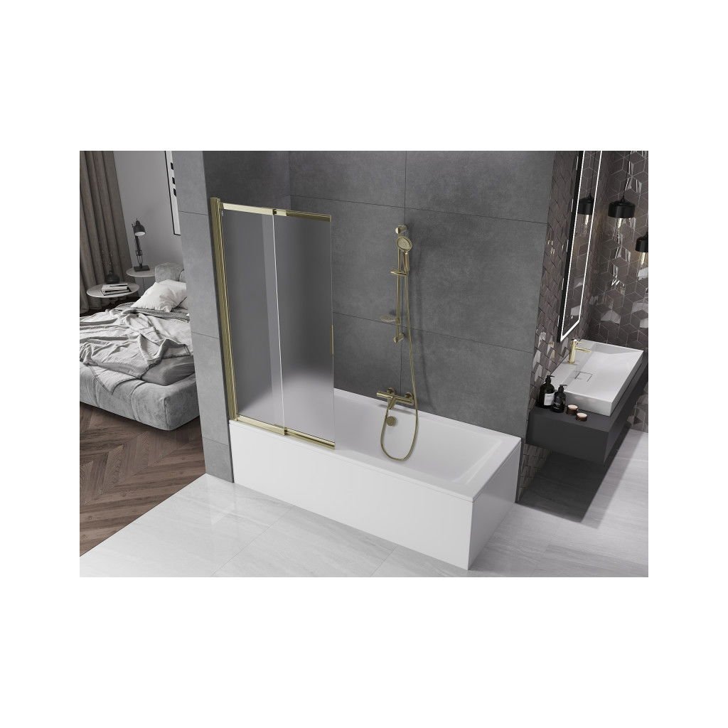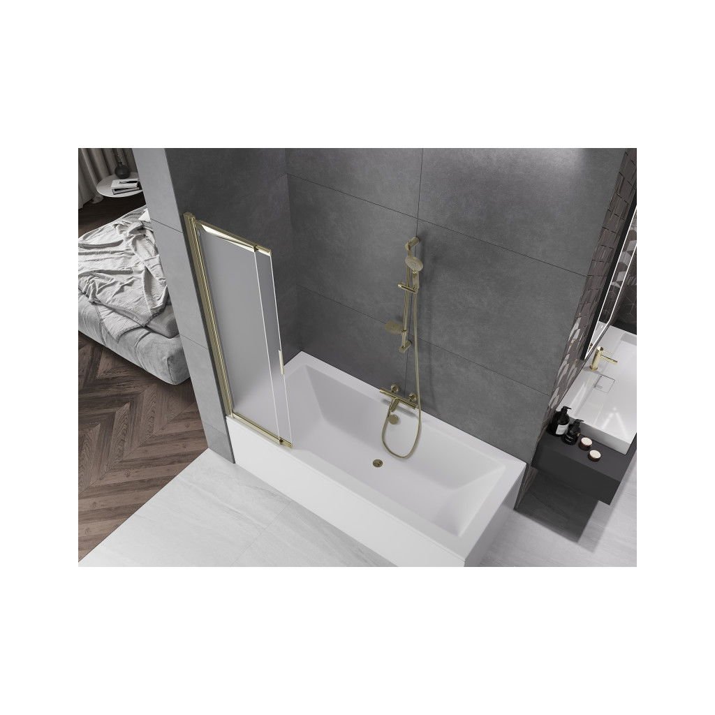 Mexen Fox, 2-křídlová vanová zástěna 85x150 cm, 5mm sklo námraza, zlatý lesklý profil, 891-085-002-50-30