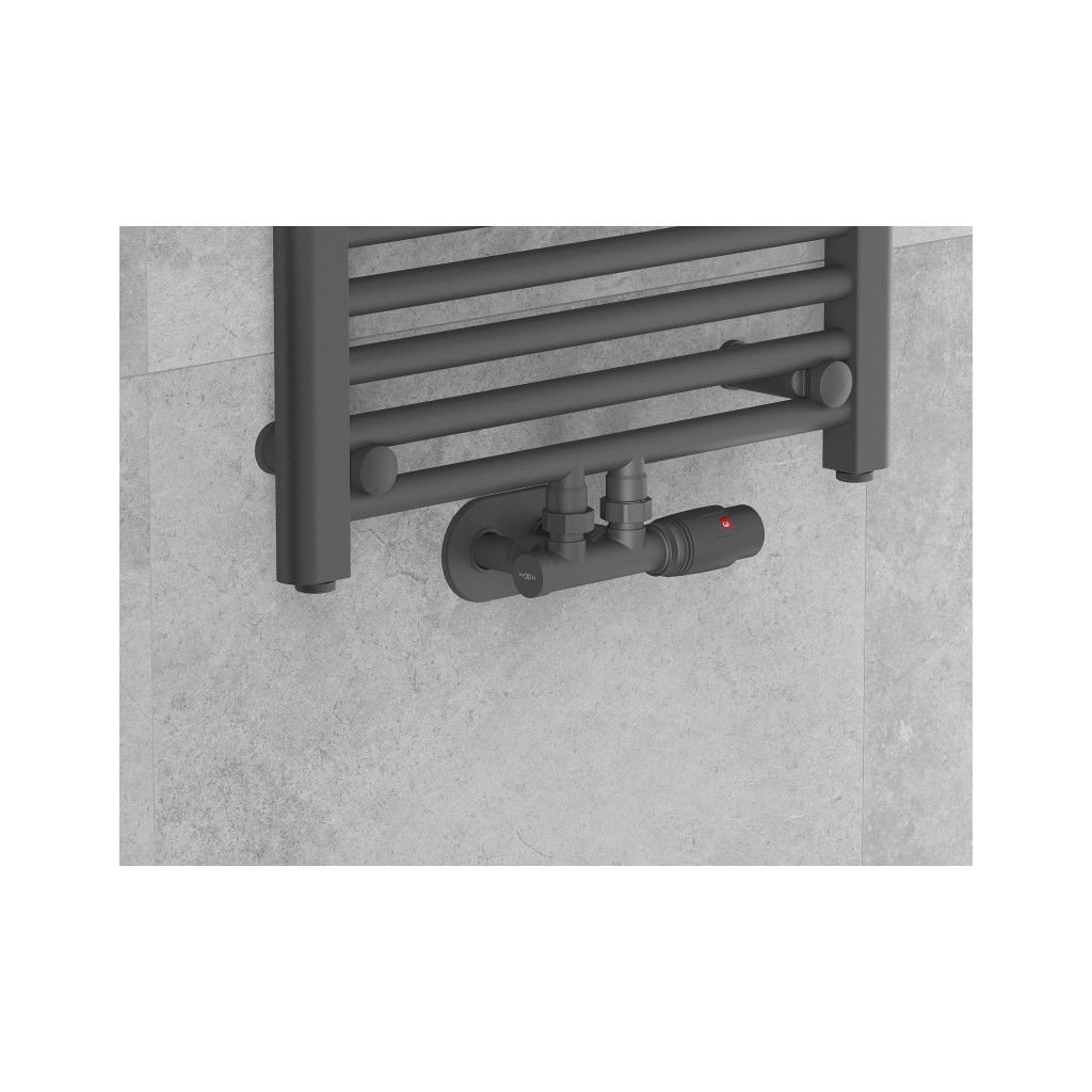 Mexen G00, připojovací sada ventilů termostatická pro středové připojení DN50 + krytka, antracitová, W907-900-905-66