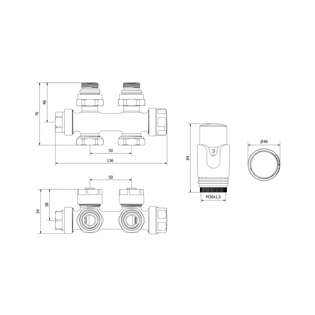 - Závit hlavice: M30 x 1,5 mm