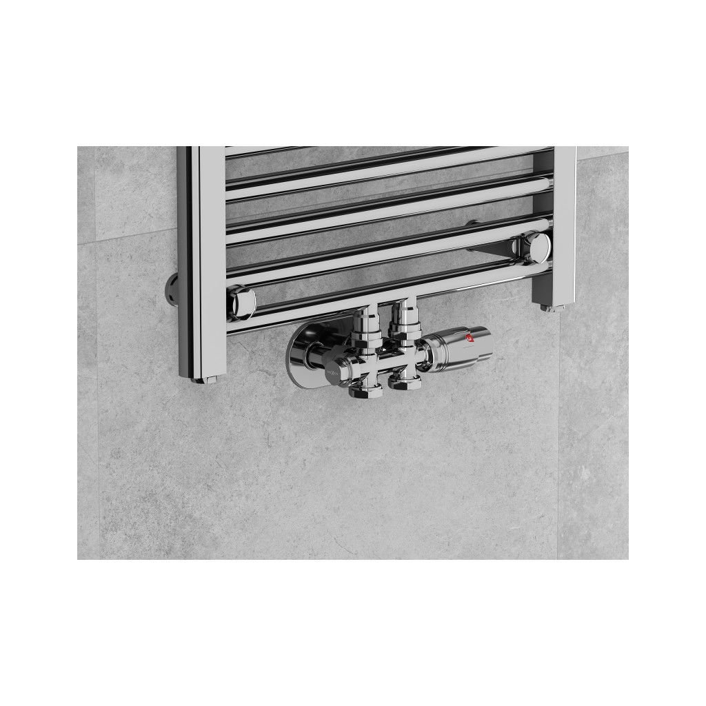 Mexen G00, termostatická souprava Duplex s kulatou krytkou, úhlové/rovné připojení DN50, chromová, W908-900-905-01