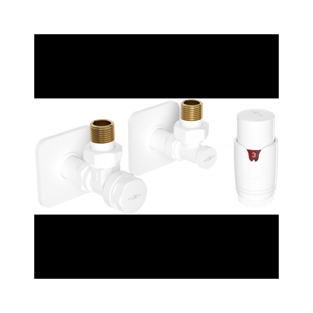 Mexen G00, úhlový ventil G 1/2" s krytkou a termostatickou hlavicí M30x1,5 mm, bílá, W901-900-909-20