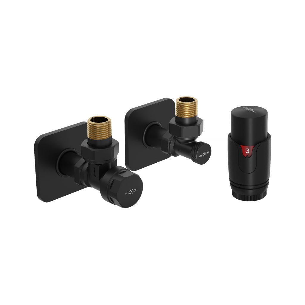 Mexen G00, úhlový ventil G 1/2" s krytkou a termostatickou hlavicí M30x1,5 mm, černá matná, W901-900-909-70