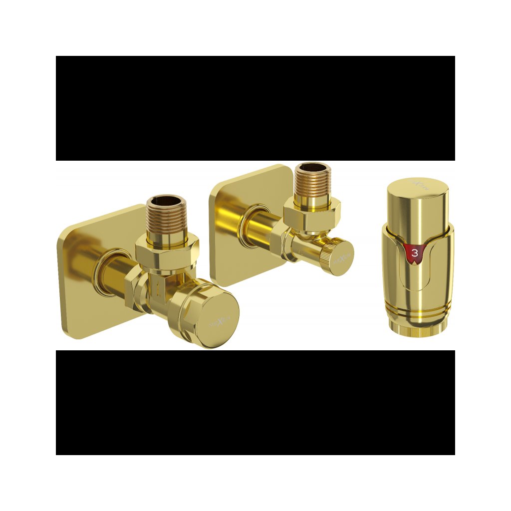 Mexen G00, úhlový ventil G 1/2" s krytkou a termostatickou hlavicí M30x1,5 mm, zlatá lesklá, W901-900-909-50