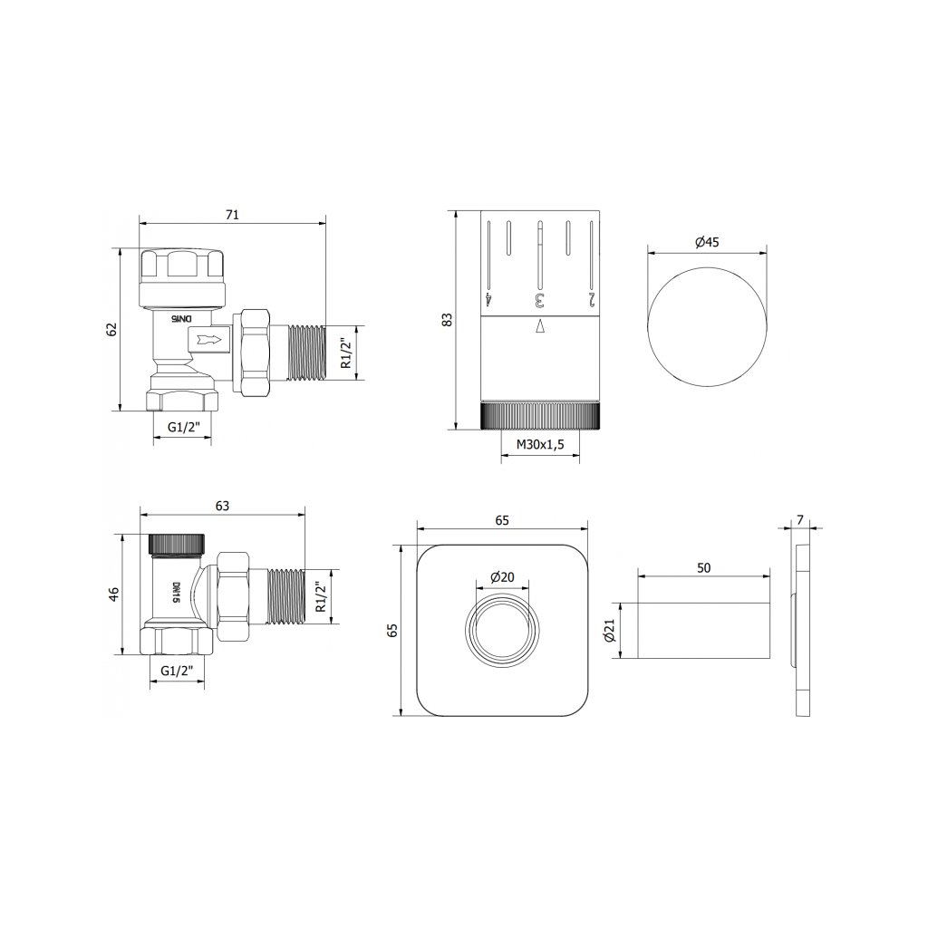Mexen G05, úhlová termostatická souprava s hranatou krytkou, chromová, W901-958-909-01