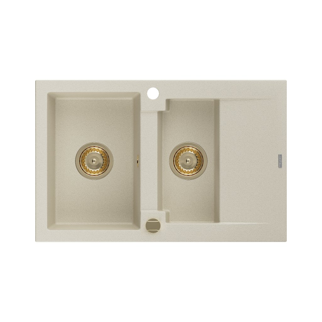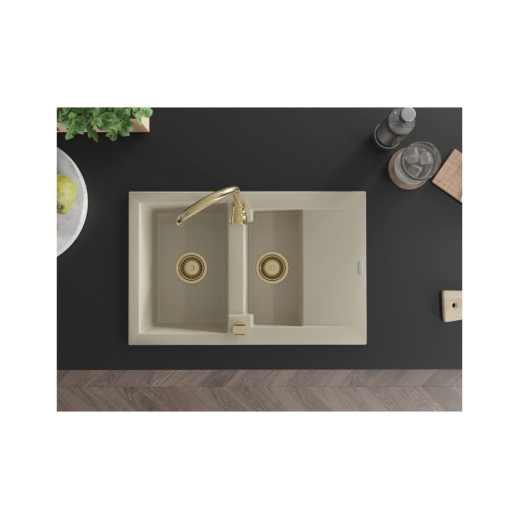 Mexen Gaspar, granitový dřez 737x475x177 mm, 1,5-komorový, béžová se zlatým sifonem, 6507731505-69-G