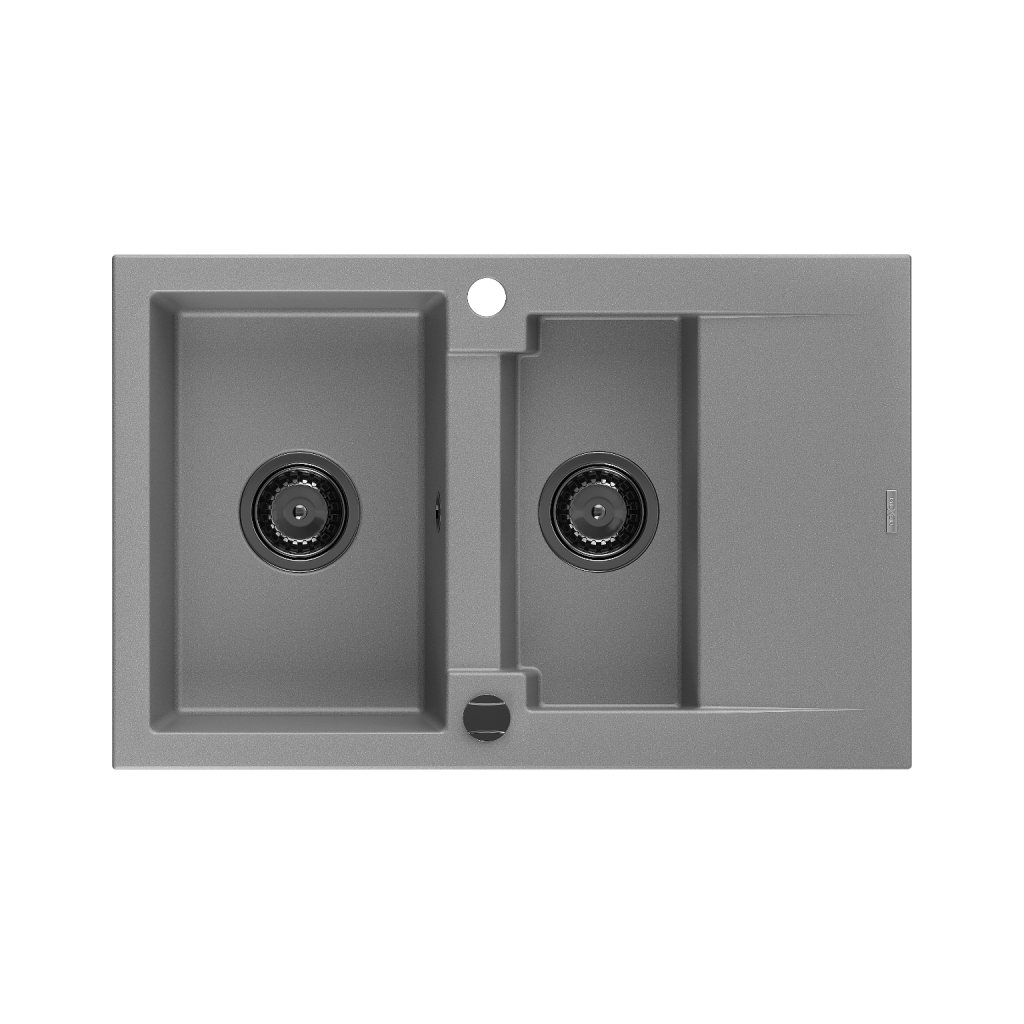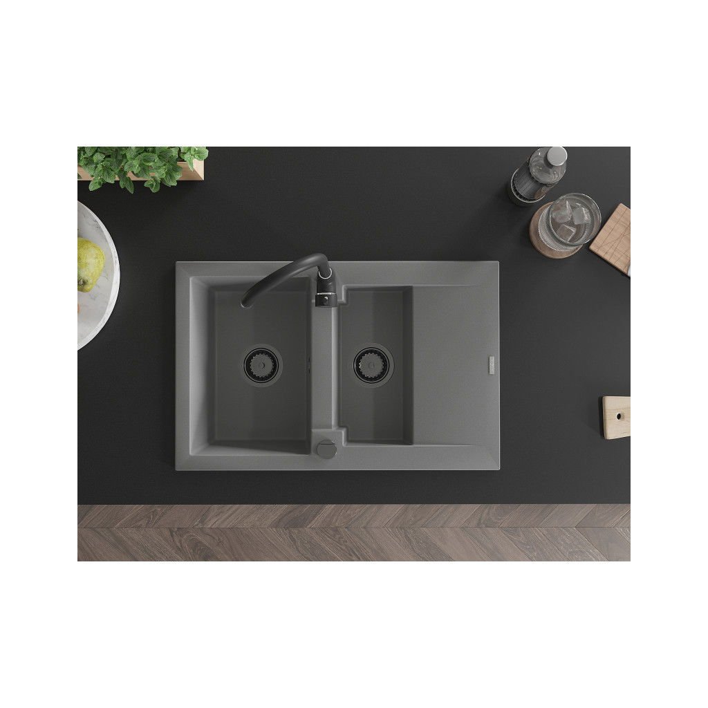 Mexen Gaspar, granitový dřez 737x475x177 mm, 1,5-komorový, šedá s černým sifonem, 6507731505-71-B