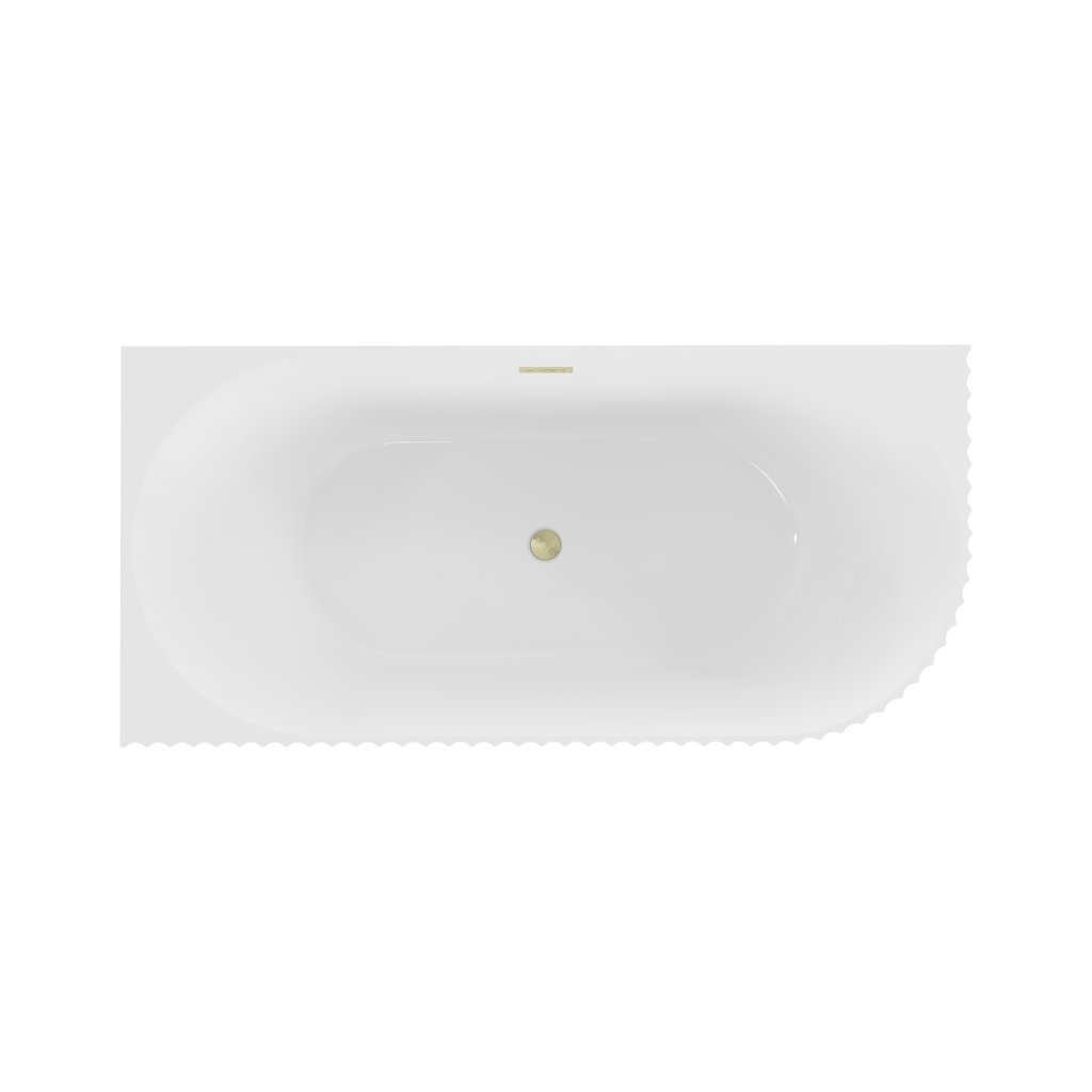 Mexen Gia, volně stojící rohová vana, drážkovaná, levá, 150 x 75 cm, bílá lesklá, zlatý matný přepad, 52701507500L-55